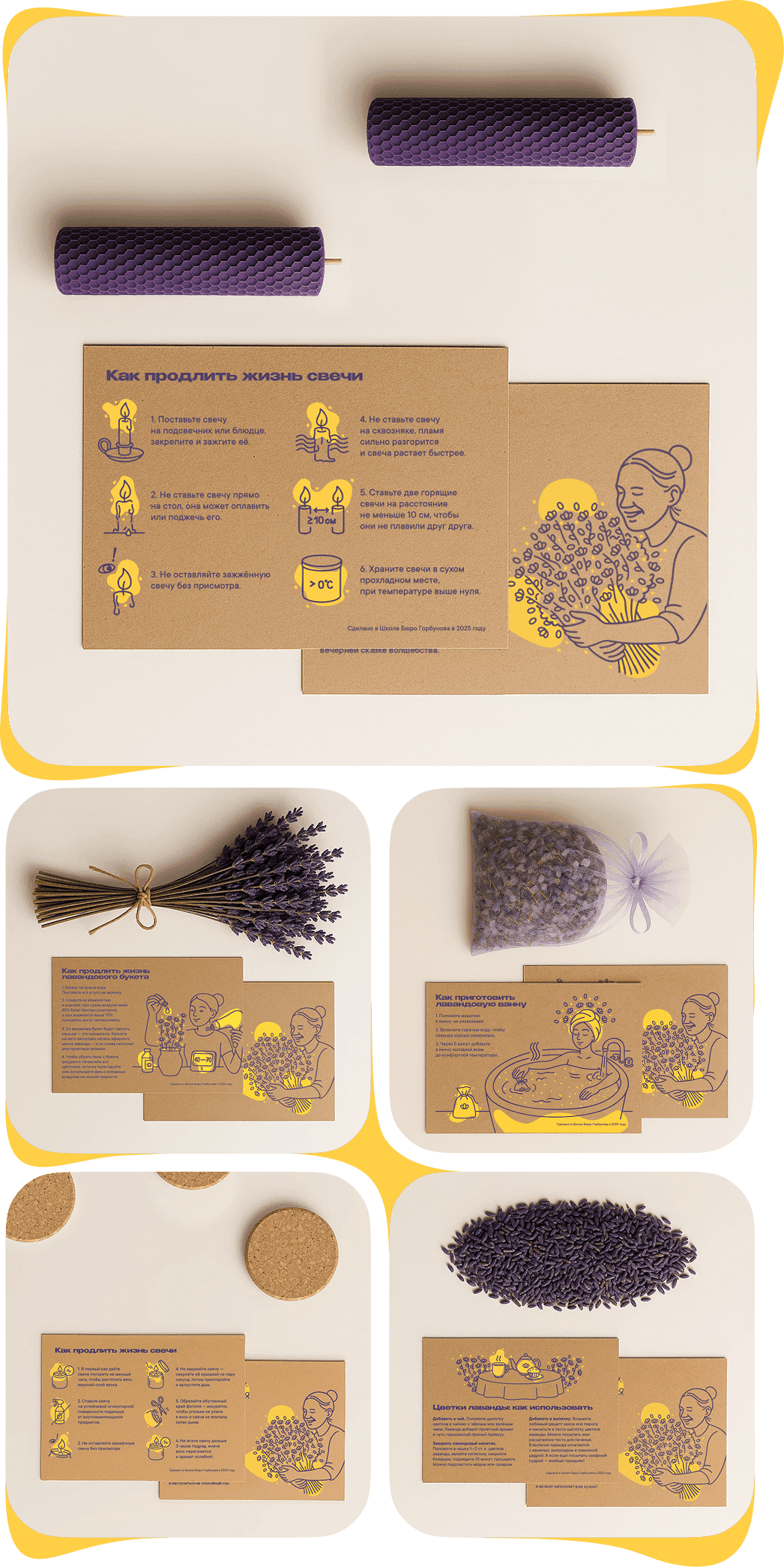 Чтобы лавандовые товары запоминались покупателям, сделал карточки с инструкциями, как правильно пользоваться товарами. Инструкции хочется сфотографировать, выложить в сториз, отметить дачу и порекомендовать друзьям.