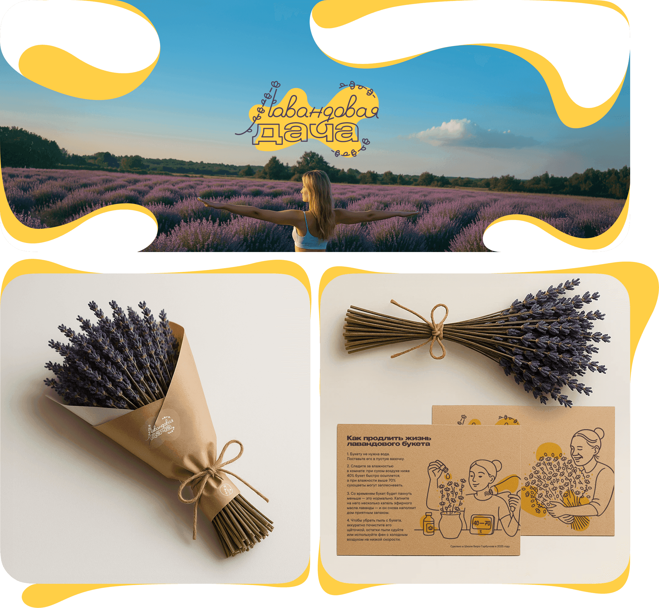 Дипломный проект — реальный проект. В Бюро диплом должен быть коммерчески успешным, поэтому мы взяли клиентский проект с чётко определённой аудиторией, реальными ограничениями и измеримыми целями. В моём случае это было лавандовое поле — семейный сезонный бизнес Катерины Перепёлкиной.