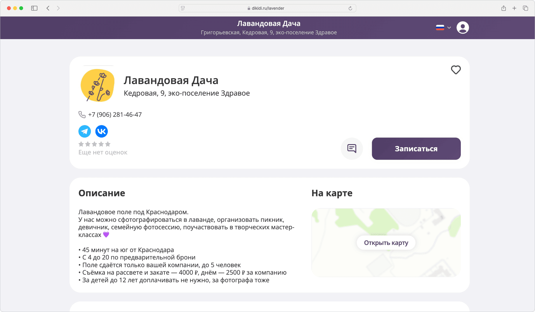 Помочь хозяйке лавандового поля повысить продажи лаванды, сделать продукцию узнаваемой на рынке эко-товаров Краснодарского края и упростить бронирование фотосессий на поле.